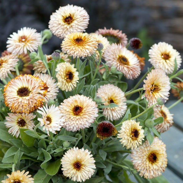 Ringblommor (lat. Calendula officinalis) är ettåriga och odlas främst för de dekorativa blommornas skull, men har även en lång historia av att användas som nyttoväxt i exempelvis salvor. Ringblomma går utmärkt att använda som dekoration i matlagning, Den blommar med ett överflöd av blommor i toner av orange, gult, laxrosa och gulvitt från tidigt på sommaren till långt in på hösten då första frosten tar dem. Perfekt blomma i både rabatt, kruka, köksträdgården, ja, överallt egentligen! Så ringblomma regelbundet under hela säsongen så kan du alltid plocka en vacker bukett.