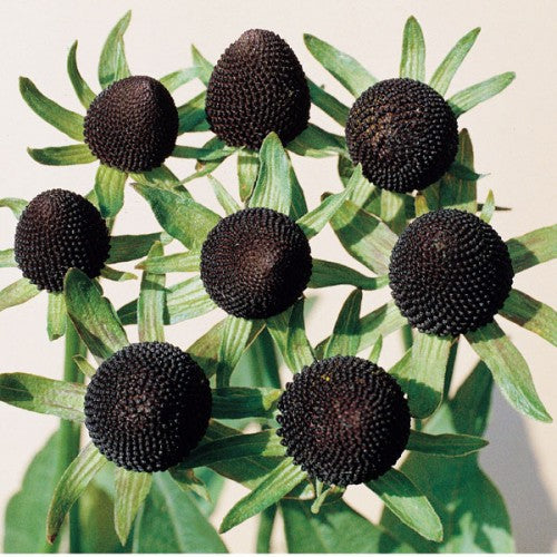 Spännande senblommande perenn med väldigt speciellt utseende. Blommar från juli till sista frosten med prästkrageliknande blommor med gröna glesa kronblad och mörkbrun konformad mitt. Står sig fin länge som snittblomma.